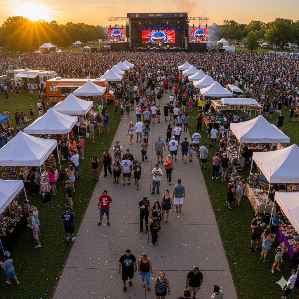 - On-Site Impact: Massive LED stage wall rotations and primary branding at Hidden Lake Park.